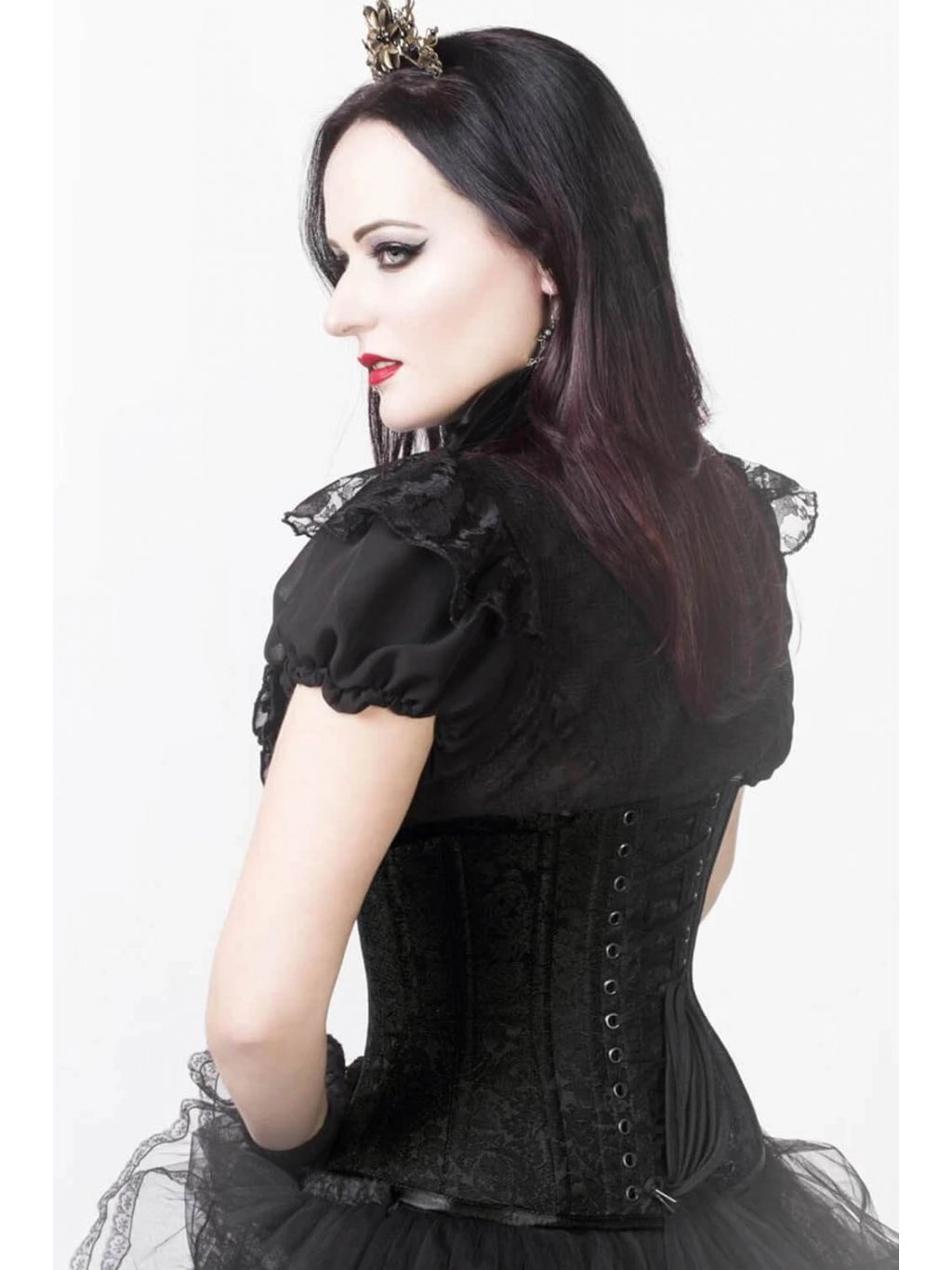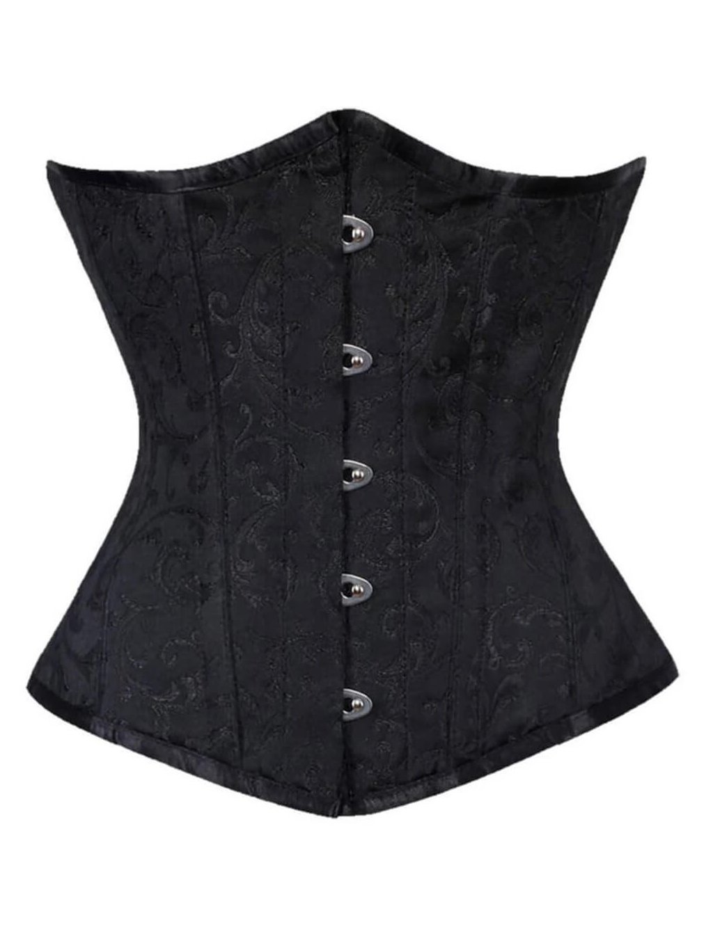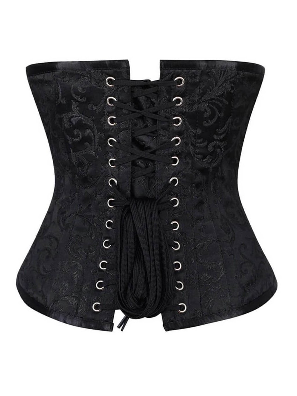 Korzet - Stahovací korzet pod prsa pro společenské události z černého brokátu (běžná délka, bavlněná podšívka, ocelové kostice)