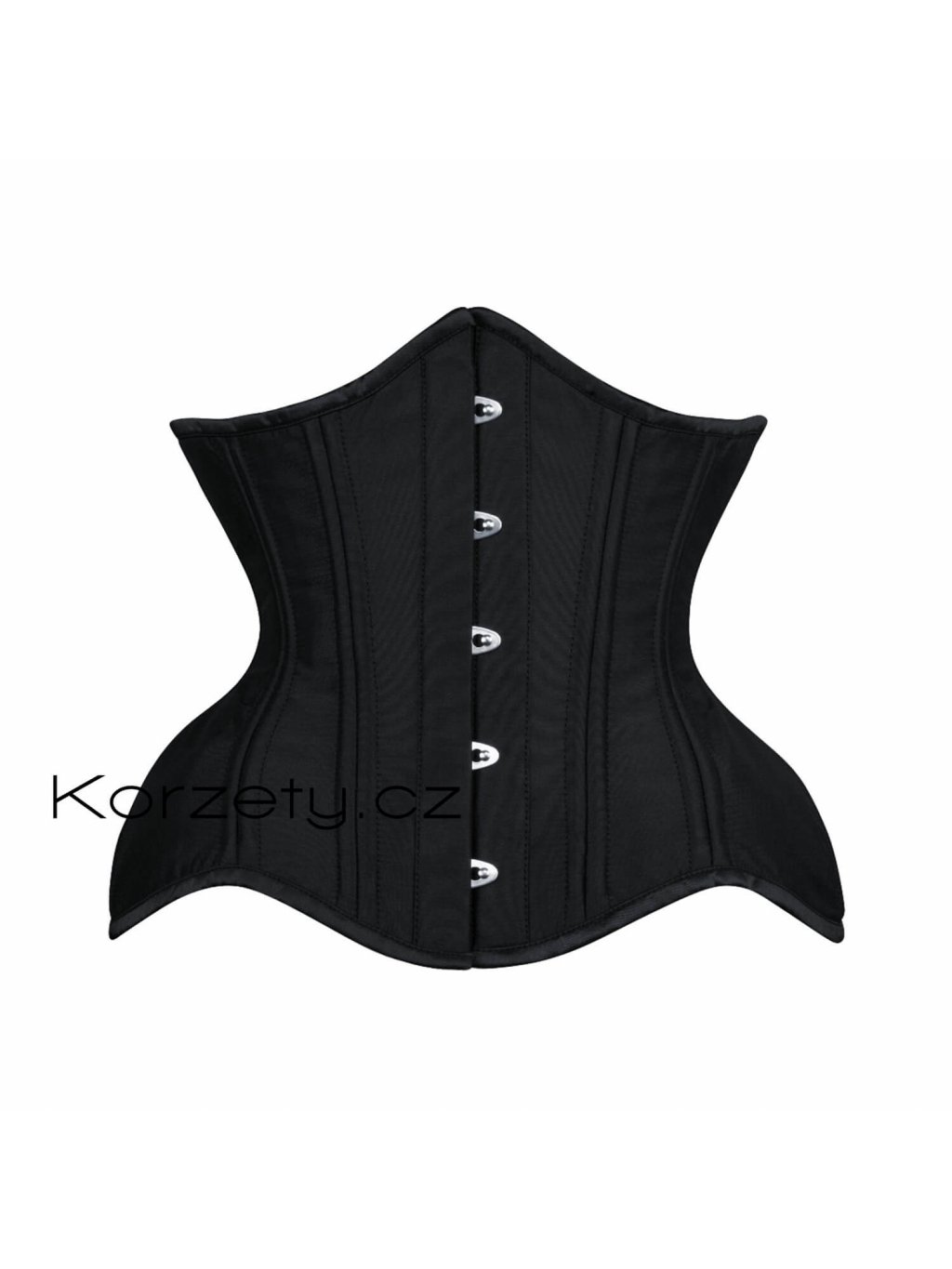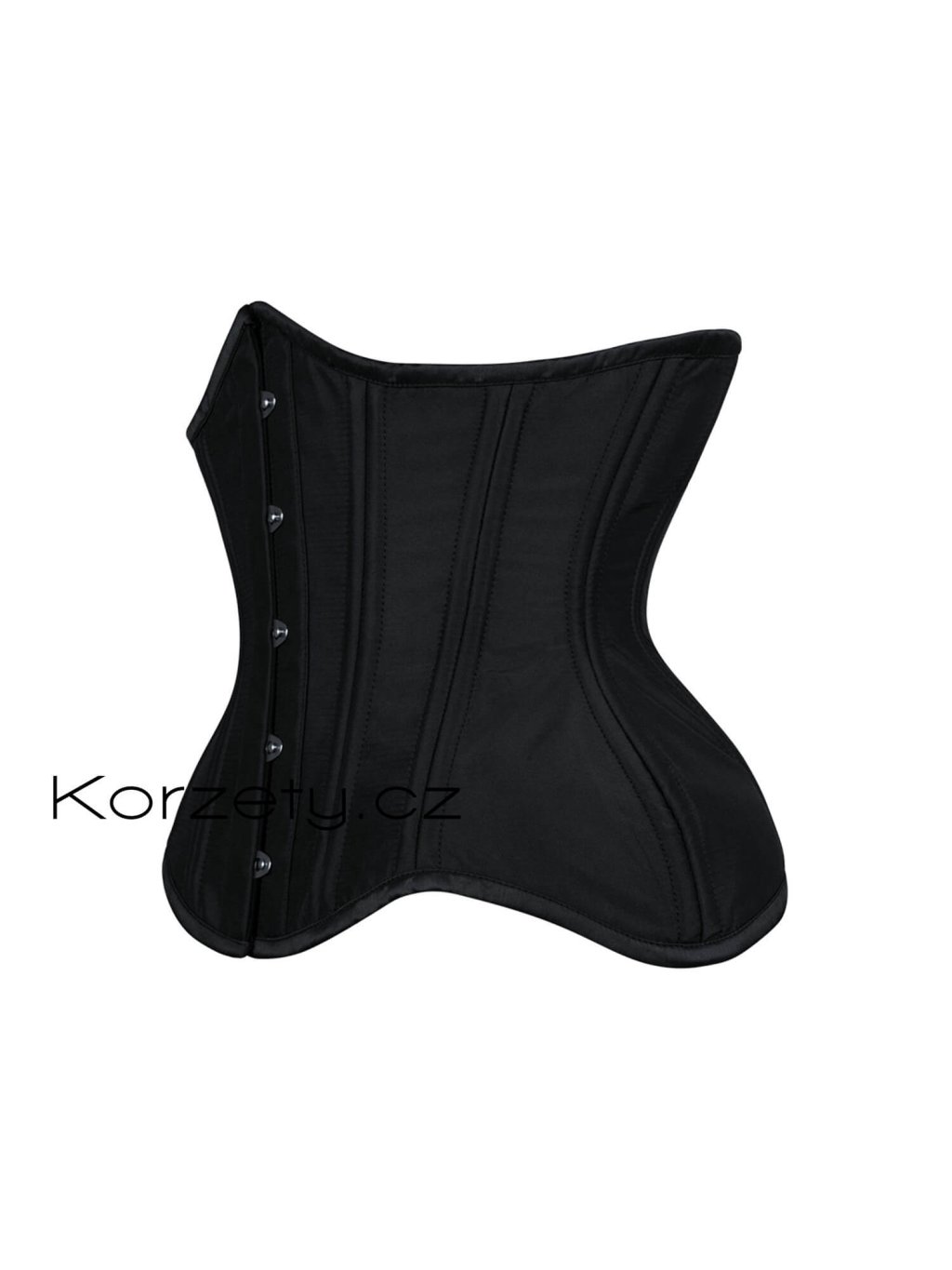 Extra stahovací černý taftový pasový korzet s boky (běžná délka trupu, bez košíčků)