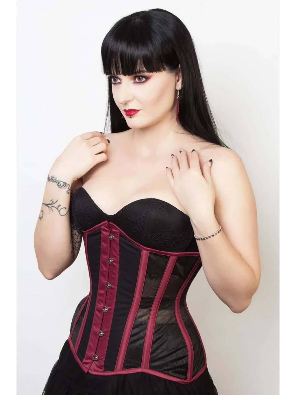 Prodloužený dvoubarevný síťovaný pasový korzet (prodloužený pasový korzet, bez košíčků)