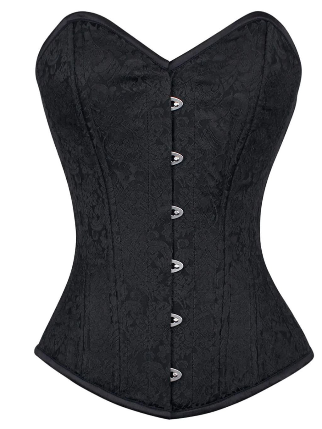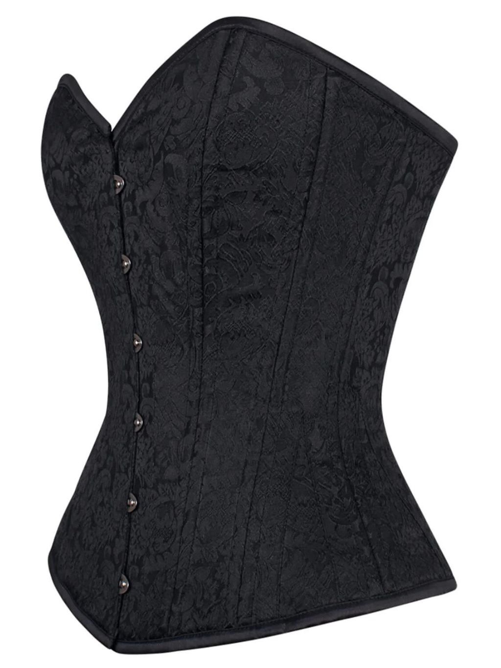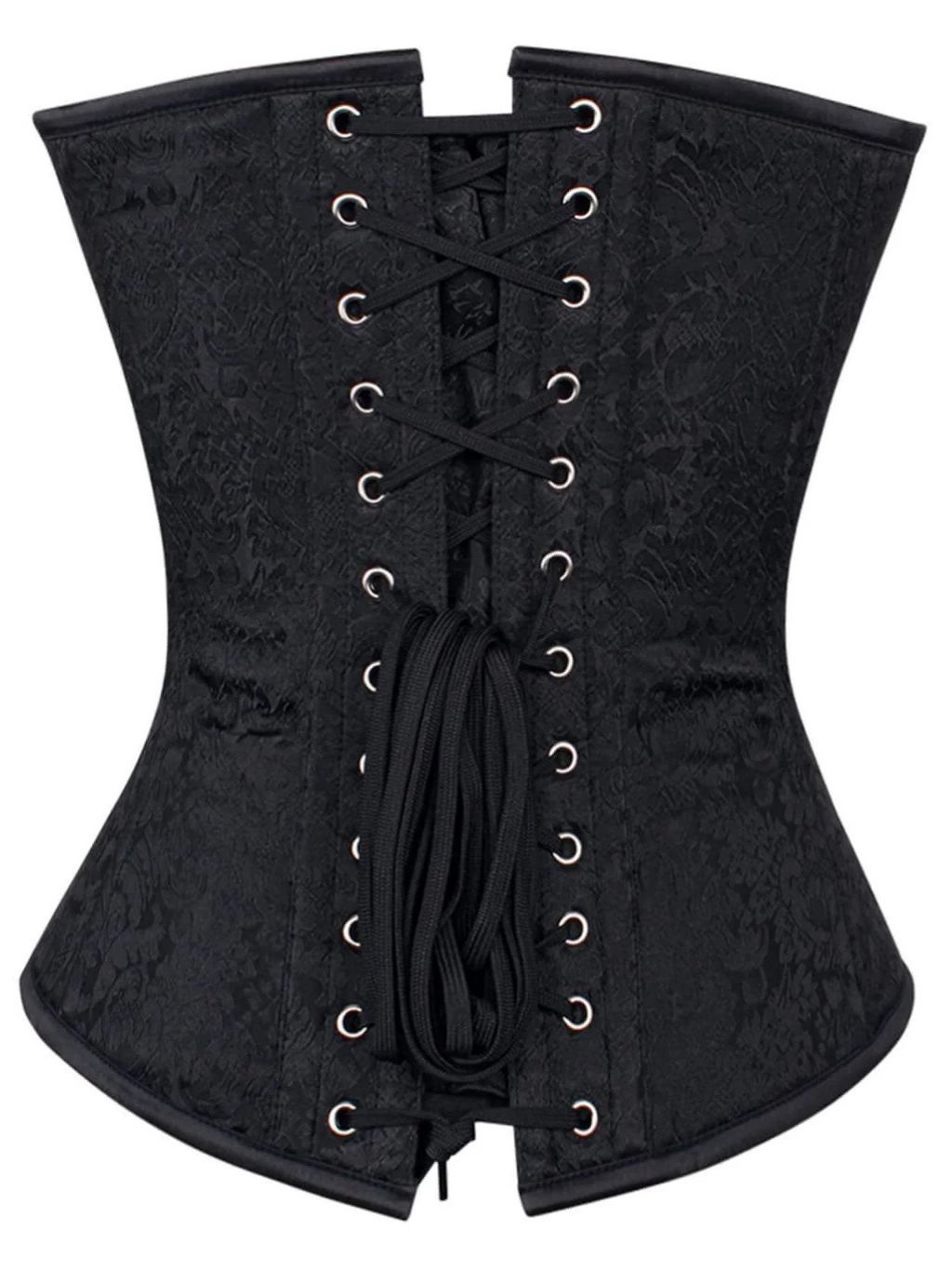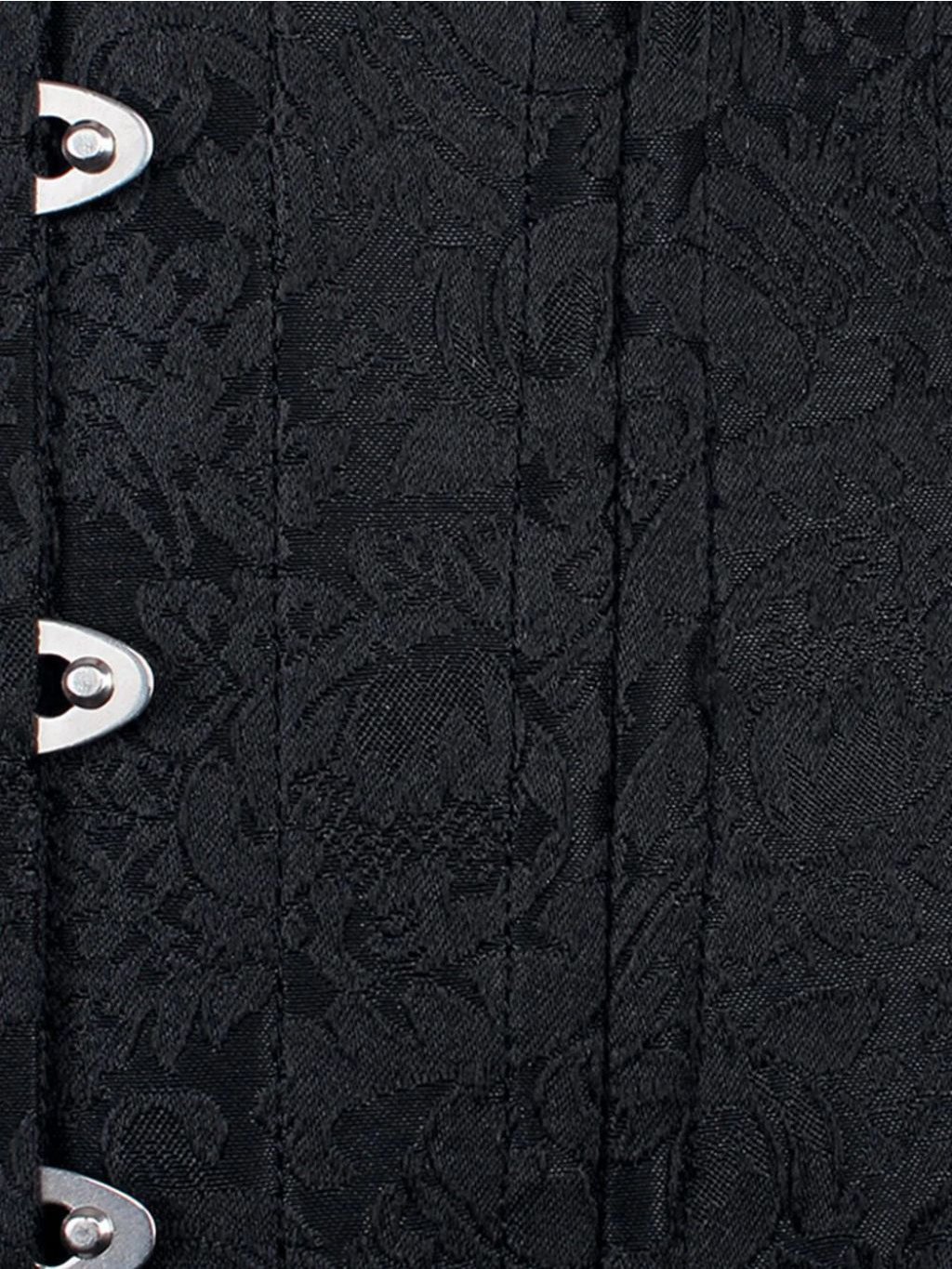 Stahovací černý brokátový korzet lehce prodloužený (košíčky C,D - běžná délka trupu, lehce prodloužená délka o 3cm)