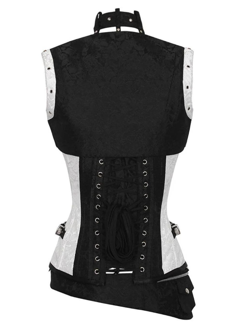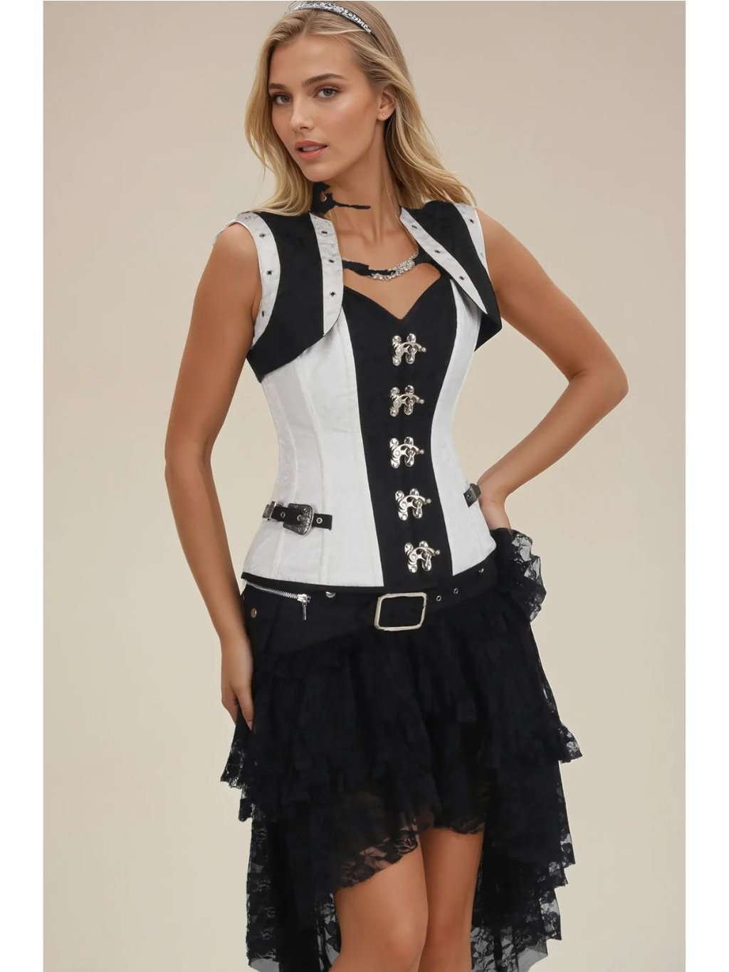 Steampunk korzet s bolerkem a opaskem - černá/bílá (běžná délka trupu, košíčky C, D)